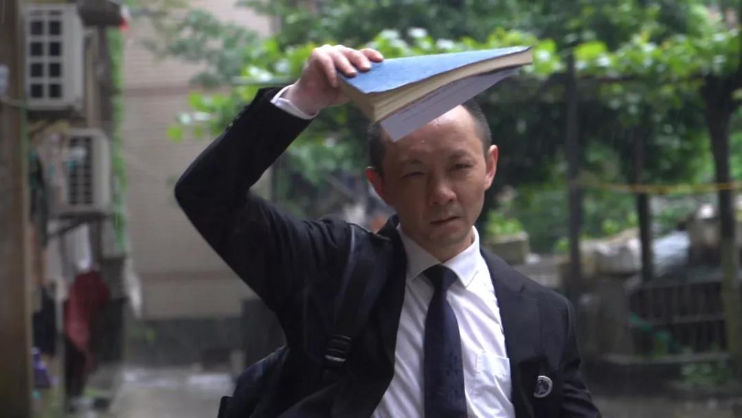 律師身上濕透了,工作人員也不在乎是否淋雨是否感冒了,只想著將這一畫(huà)面拍好,才有了我們看到的這樣一幕。